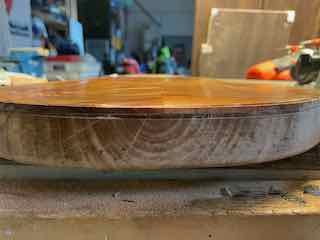 Homma pääsi kuitenkin loppukesästä hyvin vauhtiin ja muutamien tuntien JuuTuubi -videoiden katselujen jälkeen päätin että en käytä mitään ideaa mitä Tuubi tarjosi. Tai siis kyseessä oli se miten teen kaarevuuden kanteen. Lopputuloksena tein lyijykynällä apuviivat ja laitoin rälläkkään hiomalaikan.. sit menikin improvisoinnilla. Eikä tullu edes huono vaan olin tekemiseeni kovinkin tyytyväinen. Elektroniikan ja potikoiden paikathan olin jo tehnyt ennen kannen liimaamista ja selkeääkin selkeämpi oli että soittimeen ei tule mitään erillistä “pleksiä” jossa volumet ja tonet olisivat vaan kaikki tulee puun läpi nätisti kanteen joissa olisi kiva “pyöristys”.